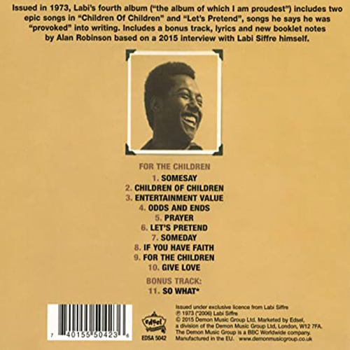- See Jeffrey Side interview with Labi Siffre in The Argotist Magazine Online (England: Liverpool University and Arts Council, 1997), accessed 7/23/20, https://argotistonline.co.uk/Siffre%20interview.htm