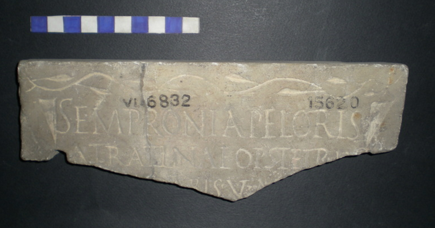Sempronia Peloris occupied a place of esteem in her community, but her status is not explicitly stated. The four other tabella include ornate decoration, marking affiliations with family as well as unique personal details: the freedman Lucius Sempronius Laethus lived 113 years(!) and Lucius Sempronius Faustus, mourned by his mother after only 11 years, boasts a similar leafy framework. Peloris’s name and inclusion with other liberti suggest that she was of free status, but if she was enslaved, her inclusion would be all the more exceptional.