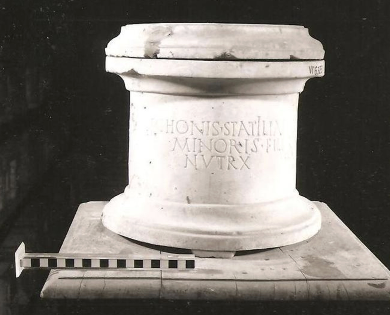 Its original location is not known, but holesindicate that it was nailed outside a niche, where it would have been eye-catching and served as a poignant memorial for her family and friends. How did Secunda compare with other working women in her community? Echonis, an enslaved wet nurse (nutrix) of Statilia the Younger’s children, was honored with a marble urn for a large niche (Figure 4). Her name, role, and association with the family, as well as the urn’s shape, were recognizable to friends and family. Meanwhile, Italia, an enslaved woman married to a courier for the Statilii Tauri, has a lovely marble tabella carved in graceful letters. A bond with her spouse and his connection to the Statilli are preserved in a large, well-executed inscription (Figure 5). In contrast, Urbana Veterana, who like Italia was a “basket wench,” has a humble inscription even though she has two Latin names: scraped in child-like forms which are more difficult to read.