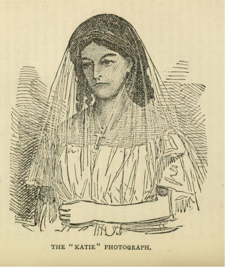 Fig. 2. Drawing of Katie King from a (now lost) photograph. Reproduced in Henry Olcott’s “People from the Other World” (1875).