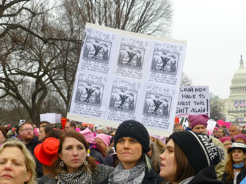 Take, for instance, the use of orange items people used in the spell to bind Trump. The use of orange items tells us that witches have a wicked sense of humor, clearly meant to poke fun at Trump’s fake tan. But making fun is not all that these witches were doing. Anthropologist Mary Douglas describes a specific type of comedy that relies not on the humiliation of another person but on countering control with something uncontrollable (like an internet meme) and thus triumphing over it.2 She argues humor is a type of social force that can be used subversively to challenge hegemonic forms of power. Humor and laughter can be powerful tools when it comes to social protest. But what is it exactly that witches are challenging with these types of political hexes?