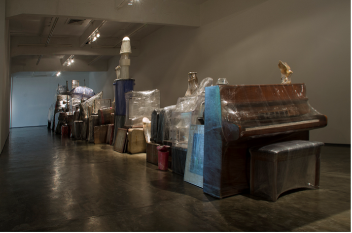 Though the story Home tells certainly stands on its own, the film also captures the “afterlife” of the over two hundred objects that, wrapped in polyethylene film, make up the installation Crisálida (chrysalis) (Figure 4), by Venezuelan artist Pepe López, Paloma López’s father. Originally shown at Espacio Monitor, Caracas, in October 2017, Crisálida was described by curator Miguel Miguel García as “the biggest, most compelling and most significant monument created until now in honor of the Venezuelan diaspora,” a diaspora that, as of 2024, encompasses more than eight million Venezuelans.14 What made Crisálida so impactful, as many critics have argued, is its liminality: the way it captures neither the moment of arrival, nor the moment of departure, but the pain that comes with the decisions that every person who has ever had to leave home knowing they might never come back has had to make: what to leave and what to take; whom to leave and whom to take.15 Wrapped in plastic, the objects in the installation are suspended, practically useless; and yet, it is precisely because of that lack of practical functionality that they can protect and preserve the memories attached to them.