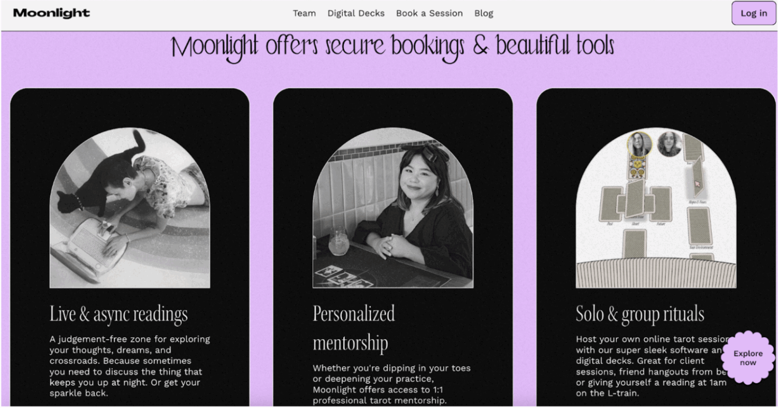 Chatbots present a unique interaction model in that they’re entirely open-ended. As a result, users are turning to them for various forms of knowledge, support, and guidance—from birth chart analysis to tarot card readings. But why do people gravitate to these tools for spiritual practices, especially when, at face value, non-human solutions might seem like the least likely to serve these needs? Besides the accessibility of being able to converse with the system 24-7, the chatbot can provide knowledge that is otherwise specialized. For example, users asking for birth chart readings would have had to either learn how to interpret their astrological charts or consult a practitioner. Some AI chatbot platforms even offer interactions with human psychic advisors that raise interesting questions about the implications of automating psychic labor and the role of occultism in the gig workforce, which we address in further detail below.