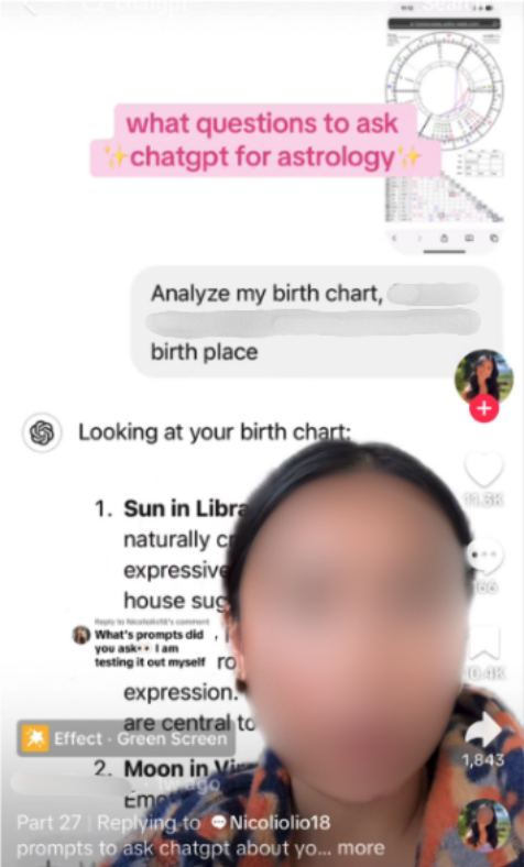 While language models like OpenAI’s ChatGPT are designed to generate coherent text based on statistical prediction, perhaps enacting a form of algorithmic divination from the outset, many users deliberately frame their prompts to elicit mystical or metaphysical responses and then treat the outputs as spiritual guidance or oracular insights. For example, some users feed GPT their astrological birth chart data and ask for personalized interpretations or advice based on planetary alignments. Others use it to generate affirmations, manifestation prompts, and ritual scripts, or even to channel messages from “spirit guides” or deities. Chatbots’ flexible language generation allows users to project intentionality onto the AI, mirroring how oracles, tarot cards, or pendulums have historically functioned as mirrors for inner inquiry.
