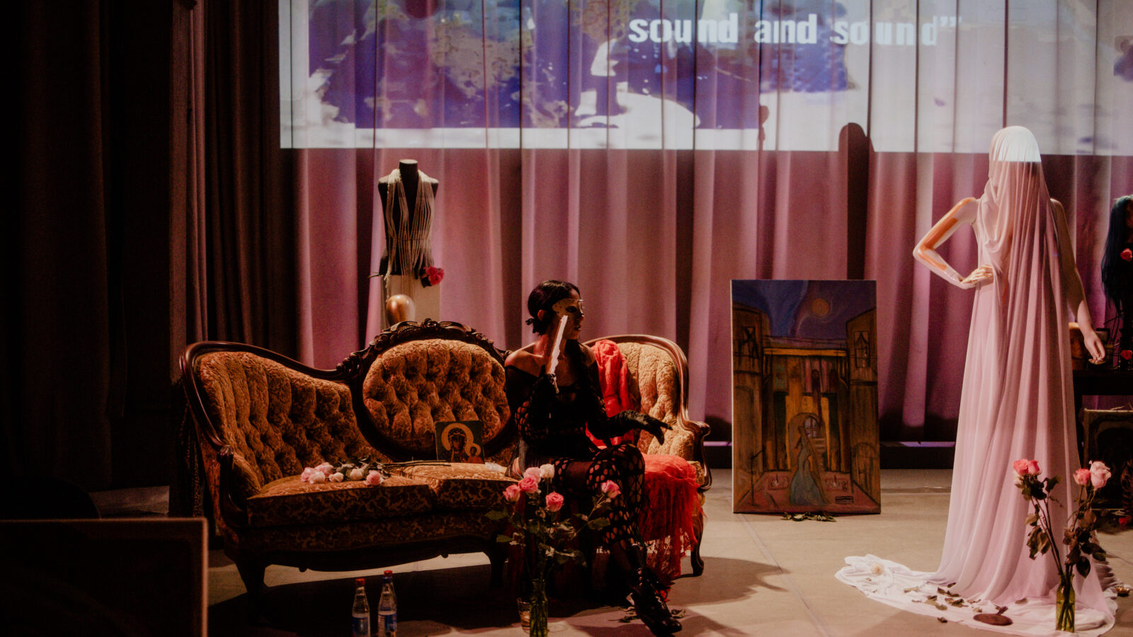 More than anything, I understand Republica as an exploration of connection forged outside traditional language. It is about the connections between sound, color, and feeling. As Robinson’s showcase begins to come to a close, another video flashes in front of the audience. The screen goes dark except for a black lit Maryam in performance, her voice speaking in the background. The bass booms; at the start, it sounds almost like house music. Maryam’s faint figure appears multiply across the screen in shades of blue and purple. The muffled sounds of a pitched down voice ring out amidst the continuous striking of a single piano key. Periodically, what sounds like a trumpet plays a little tune.