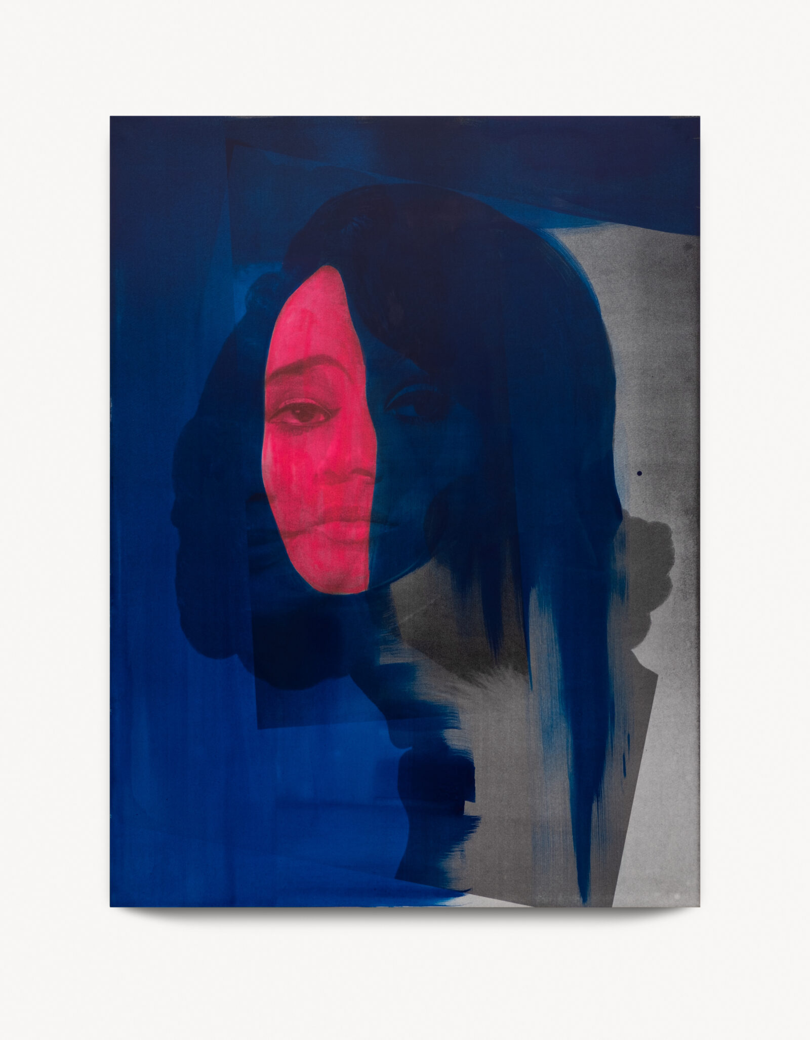 Inside the Helen and Milton A. Kimmelman Gallery (a tucked-away space in The Met’s Modern and Contemporary Art galleries) is a survey of Lorna Simpson’s large-scale paintings: glamorous portraits of bold and audacious women, archival materials that experiment with temporality and representation, and collages that remix Black feminine embodiment into ways of being and feeling beyond the human form. I floated through the open and welcoming gallery space as if I were seeing colossal statues, witnessing nature’s power, watching roaming celestial objects, even being with gods. Many of the paintings are over nine feet tall and eight feet wide, and they oscillate between opaque and transparent colors and textures. I was immersed in blues—sapphire, cobalt, aquamarine—and grays—graphite, charcoal, silver. I experienced the blurring of time. I was transported to eerie, icy landscapes that allude to Matthew Henson’s uncredited polar journey.1 I was reminded of decades that honored Black women’s beauty, writing, and culture as seen in pop-culture magazines, most notably Jet and Ebony, from the 1950s to the 1970s.2 I witnessed Simpson’s engagement with memory as it is felt and sensed in individual, distinct ways. Lorna Simpson: Source Notes invited me into a world that felt real yet elusive, familiar yet new—haunting.