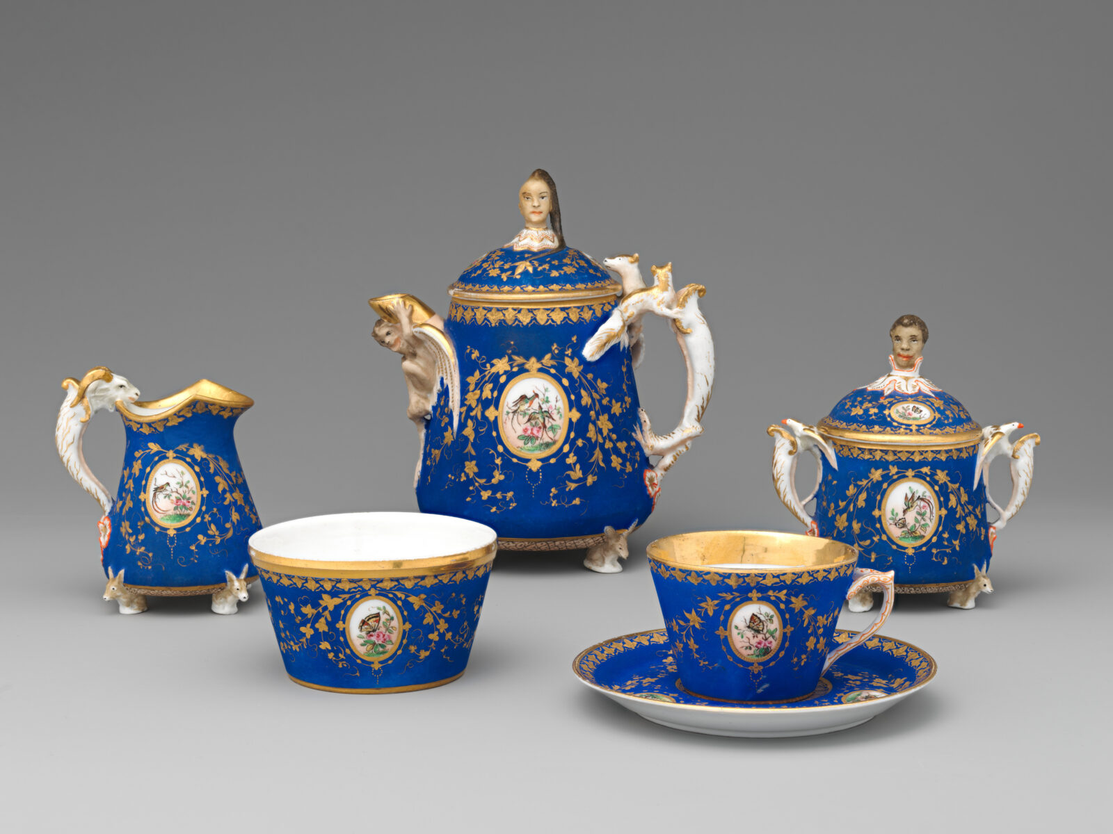 A similar violence lingers in the 1876 tea set by the American manufacturer Union Porcelain Works (Figure 4). Floral and faunal motifs are joined by the heads of an Asian man with a long queue and a Black man as finials of the teapot and sugar bowl. The design alludes not only to the contents of the wares but also to the racial makeup of the laborers on sugar plantations. Every act of serving involves pressing, lifting, or twisting motions that recall, almost viscerally, the subjugation of racialized Others. What does it mean to have a perpetually open mouth? To turn lips, queues, and torsos into functional artifacts rather than living forms?
